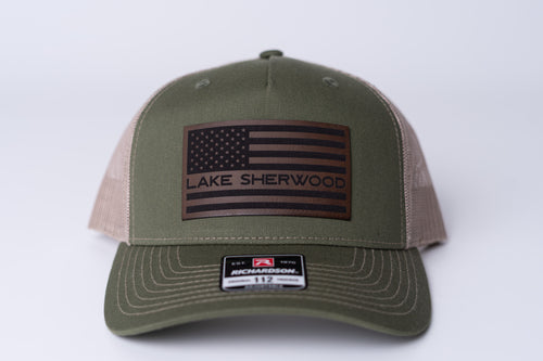 Flag Lake Name Hat - Army Olive Green/ Tan