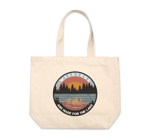 Weekends Are Made for the Lake - Jumbo Cotton Canvas Tote Bag