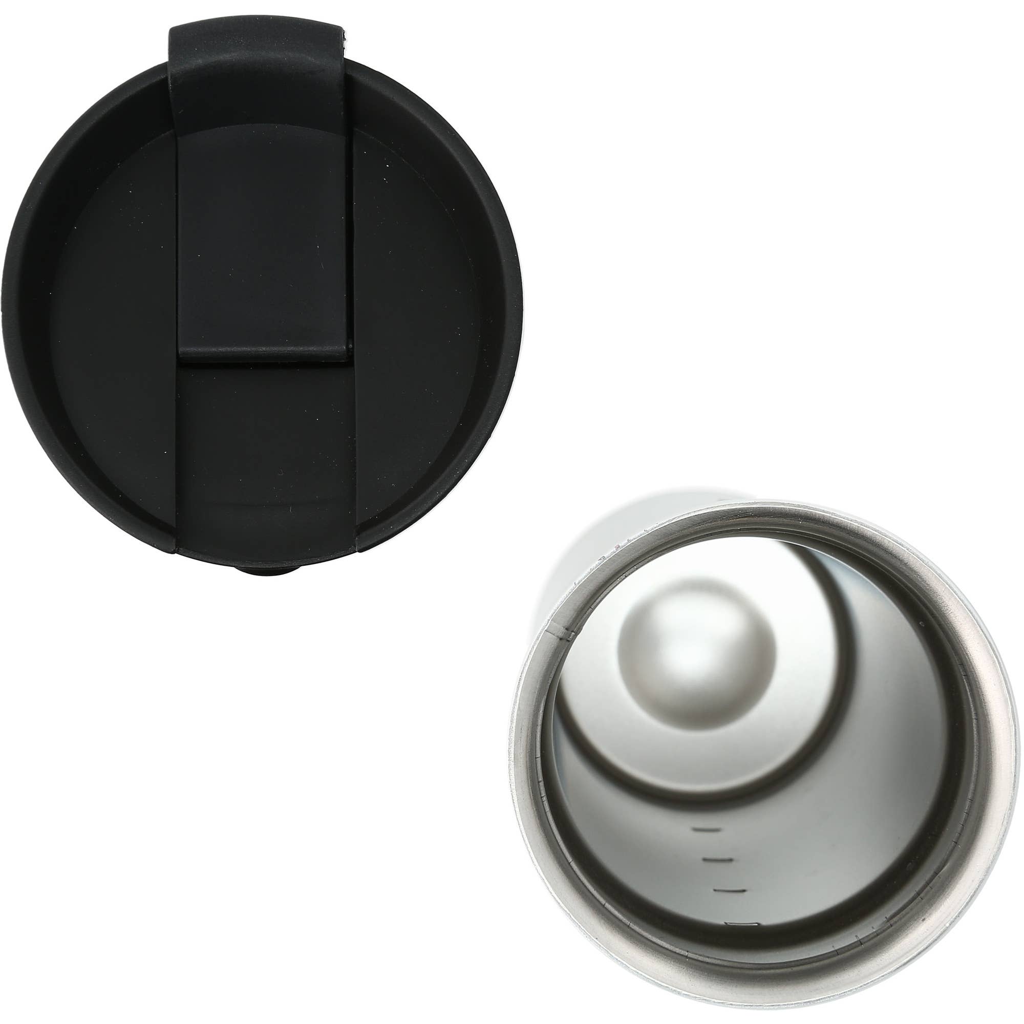 17 oz stainless steel body with 4 oz indicator lines on the interior of the cup. The BPA-free plastic lid is twist-on with a flip-open top lined with silicone at the mouthpiece closure for a no-mess spill-free design. Keeps drinks hot or cold for 6-12 hours. Bring along with your pup on the next adventure on the water, in the sunshine, or at the lake house.