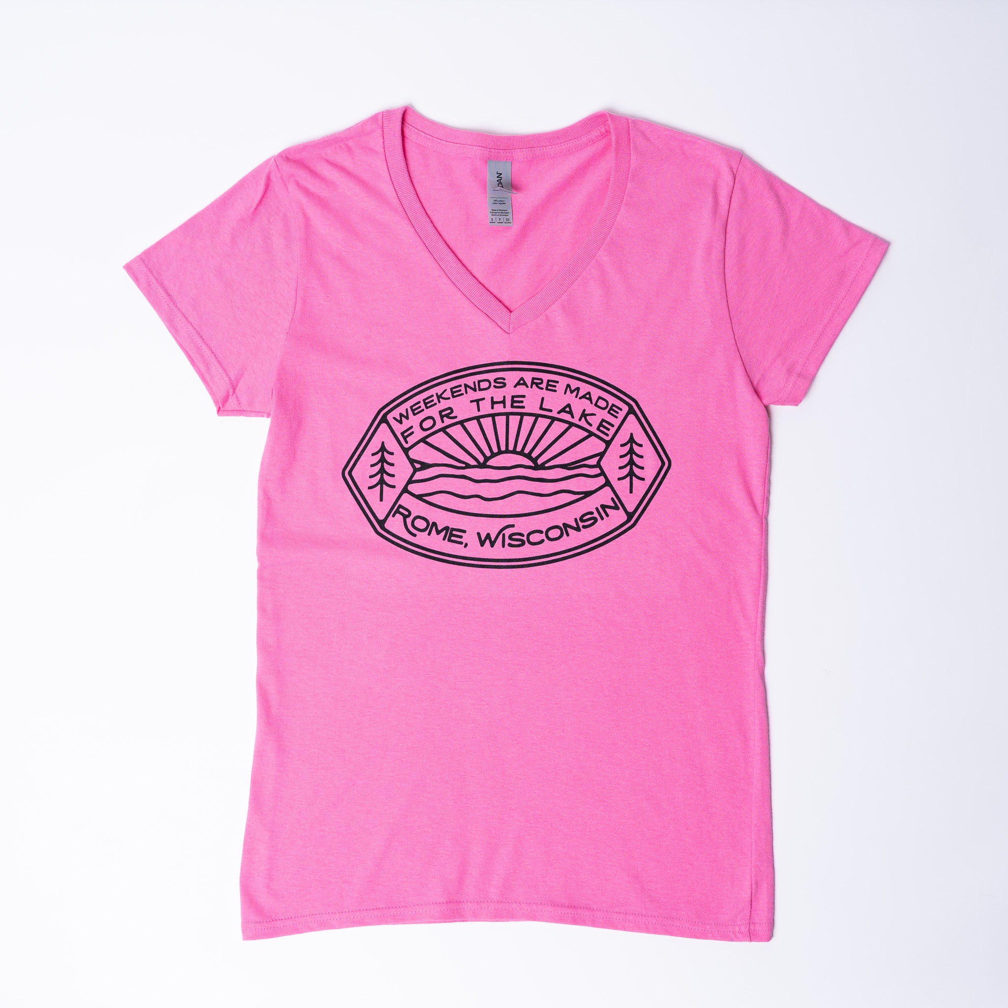 Embrace relaxed weekends in this soft cotton V-neck tee, designed with bright, happy colors that capture the joy of lakeside living. Its soft cotton fabric ensures all-day comfort while the flattering V-neck adds a touch of effortless style.